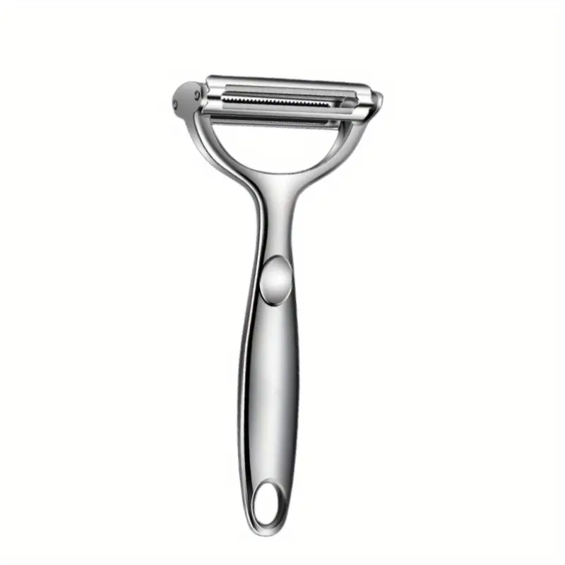 • Description: This clever tool elevates the humble vegetable peeler. It features two blades: one standard blade for peeling potatoes, carrots, and apples, and a second, serrated blade for creating perfect, professional-looking julienne strips. It’s fantastic for making salads, coleslaw, or beautiful garnishes in a fraction of the time it would take with a knife.