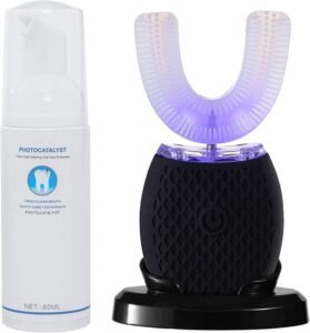 • Description: This is one of the newest and most futuristic designs. It’s a U-shaped mouthpiece lined with bristles that you place over all your teeth at once. A motor vibrates the entire mouthpiece, promising to brush all your teeth simultaneously in as little as 10-30 seconds. While the concept is brilliant, the technology is still in its early stages.