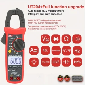 - Description: A clamp meter is a specialized but incredibly useful tool, especially for electricians and automotive work. Its key feature is the large, hinged jaw at the top, which allows you to measure high levels of AC current simply by clamping it around a wire, without having to disconnect the circuit. Most models also include standard test leads for measuring voltage and resistance.