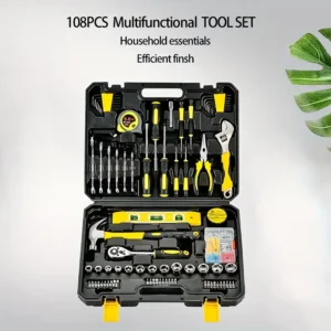 - Description: This is the quintessential all-rounder, designed to handle the most common repairs and tasks around the house. The 108-piece set typically includes essentials like a hammer, pliers, a tape measure, a utility knife, a set of screwdrivers, and an assortment of hex keys. All tools are housed in a sturdy, molded plastic case that keeps everything organized and easy to find.