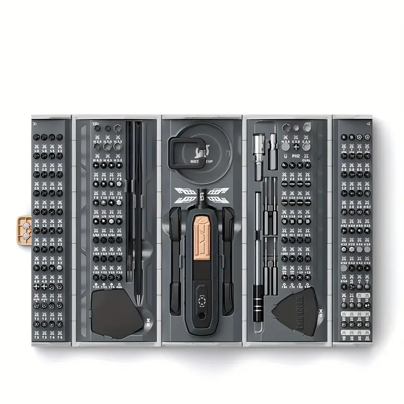 - Description: Tailor-made for the modern tech enthusiast, this precision kit is for working on delicate electronics. It includes a small screwdriver handle and a huge assortment of tiny bits designed for laptops, smartphones, game consoles, and other gadgets. The kit also frequently contains prying tools (spudgers), tweezers, and a suction cup for safely opening screens and casings.