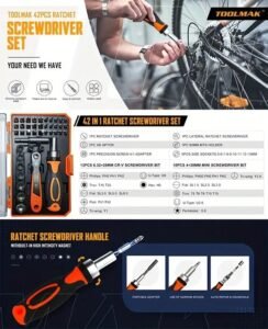 - Description: This kit bridges the gap between a general toolset and a precision kit. It features one main screwdriver handle and an extensive 42-piece collection of magnetic bits, including Phillips, flathead, Torx, hex, and many other specialty types. It often includes a flexible shaft extension for reaching awkward screws.